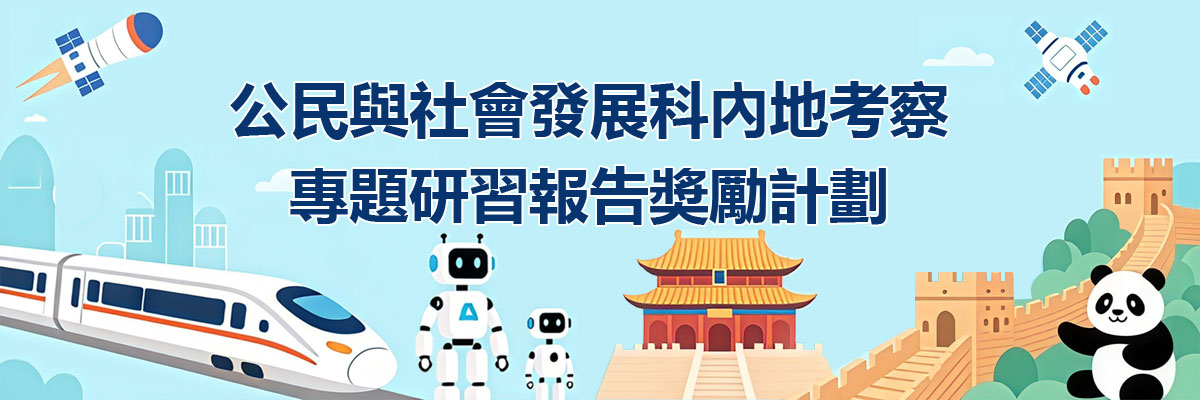公民科內地考察專題研習報告獎勵計劃 內容 閱覽或下載中文版 閱覽或下載英文版 教育局通函第186/2025號「公民與社會發展科內地考察專題研習報告獎勵計劃」 網上簡介會 連結 Link 宣傳海報 (只有中文版) 報名表格 獎勵計劃詳情 評審準則