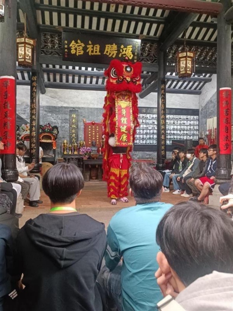 佛山鴻勝館的參訪令我格外震撼。作為中國非物質文化遺產,蔡李佛拳的剛柔並濟令人嘆為觀止。更讓我印象深刻的是舞獅表演,舞者們以矯健的身姿將「採青」動作演繹得淋漓盡致。這些傳統武術不僅是一種技藝傳承,更蘊含「以武修身」的思想。鴻勝館更有着「紅色武館」的革命歷史,許多弟子曾投身革命事業,參與廣州起義及抗日戰爭,這讓我深刻認識到,傳統文化與民族精神的緊密聯繫。